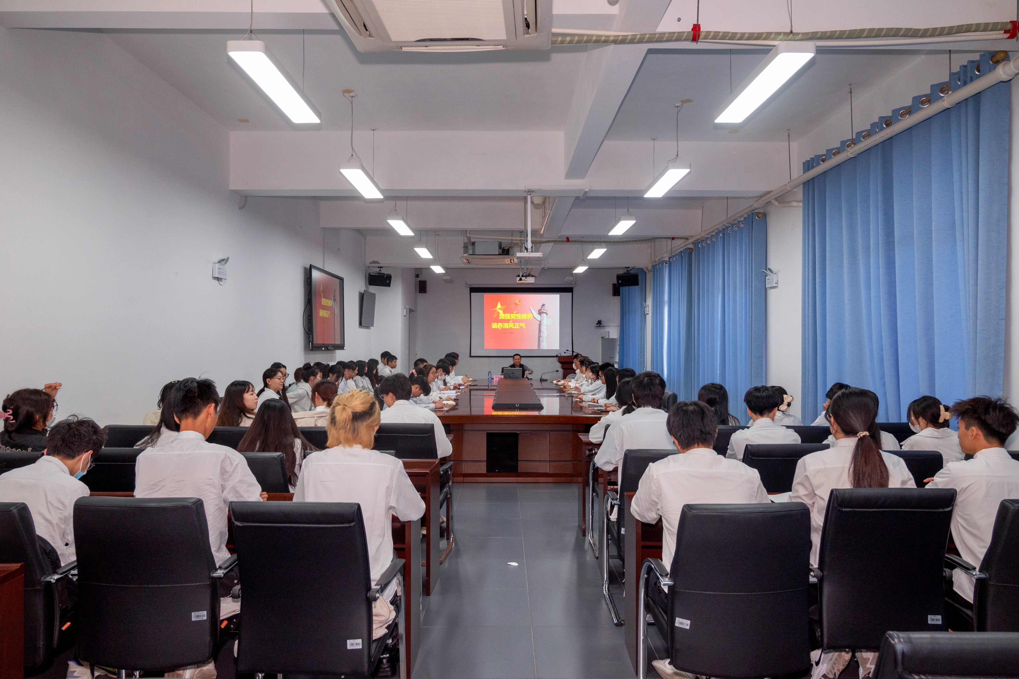 专题党课围绕《加快建设教育强国、科技强国、人才强国》、《五四精神与当代青年使命》、《坚持党性原则涵养清风正气》、《大力传承弘扬习近平总书记在福建工作期间重视调查研究的优良作风》、《从党史故事中学忠诚干净担当》、《中国共产党党史》、《理想与现实》、《增强“四个意识”争做合格党员》八个专题展开培训,进一步深化对学员的思想教育,持续推动党的创新理论入脑入心,引导学员时刻拧紧理想信念“总开关”,端正入党动机。