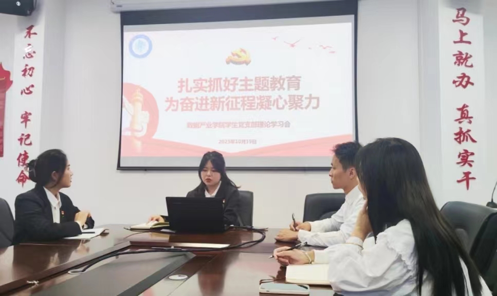 根据党中央《关于在全党深入开展学习贯彻习近平新时代中国特色社会主义思想主题教育的意见》以及我校党委关于主题教育工作的组织部署,10月24日下午,福州软件职业技术学院数据产业学院学生党支部党员活动室召开理论学习会。本次会议由数据产业学院学生党支部书记陈萍萍主持,卓兴涛、林榛桢、张梦颖同志共同参加。