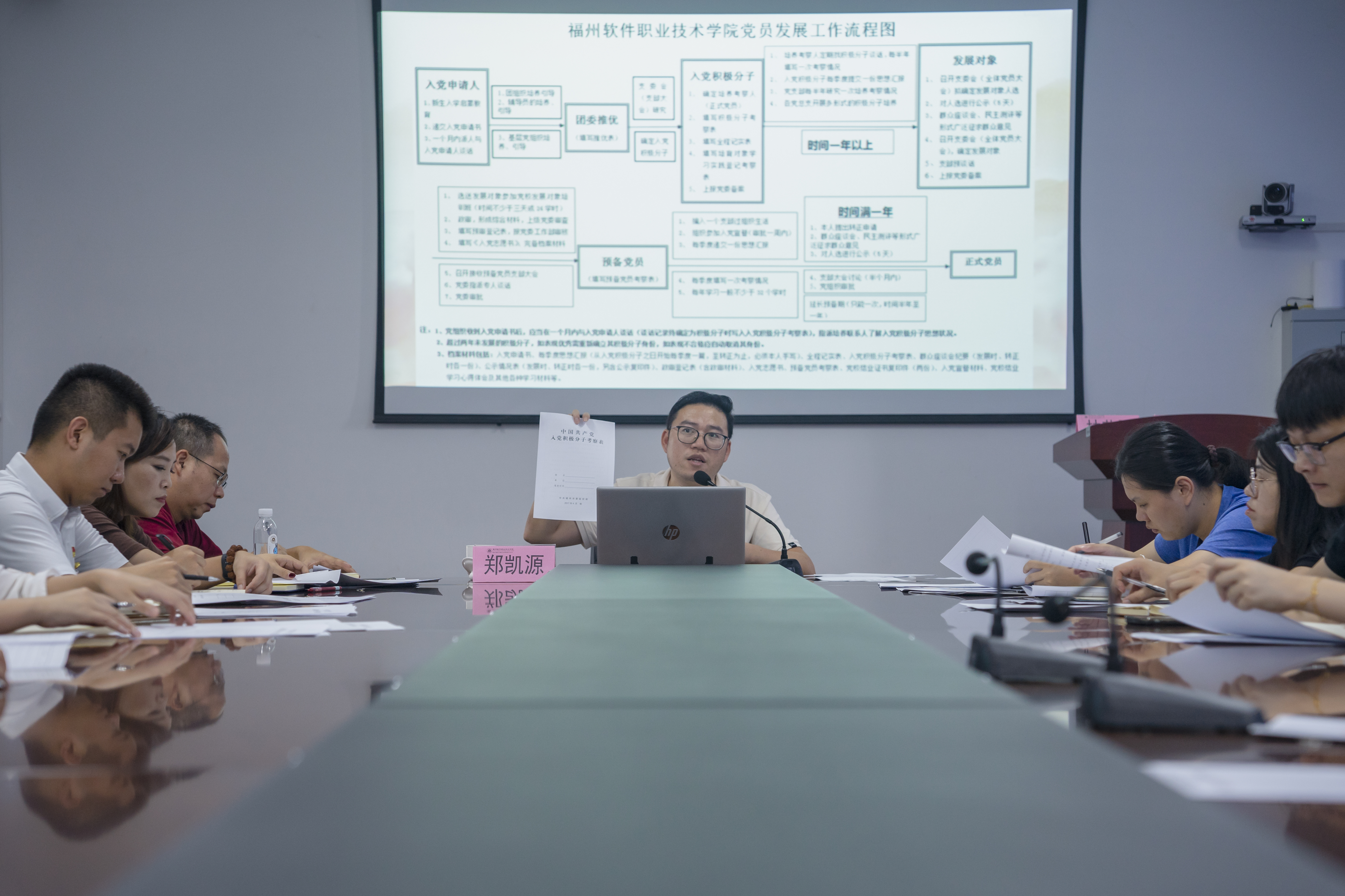 培训会上,郑凯源主任结合我校发展党员工作实际,围绕发展党员过程中的不同阶段全面系统的介绍了发展党员的重要环节、步骤和基本程序。对发展党员工作中的入党申请、积极分子的确定和培养、发展对象的确定和考察,预备党员的接收、预备党员教育考察和转正五大阶段所需的内容材料及注意事项进行逐一梳理和解读,对过程中可能存在的问题与大家进行现场交流,对党员发展过程的推荐、审查、培养、管理进行重点讲解,对党员发展过程中需要明确的时间节点做了梳理和提示,进一步提高了党务工作者的业务能力和工作水平。