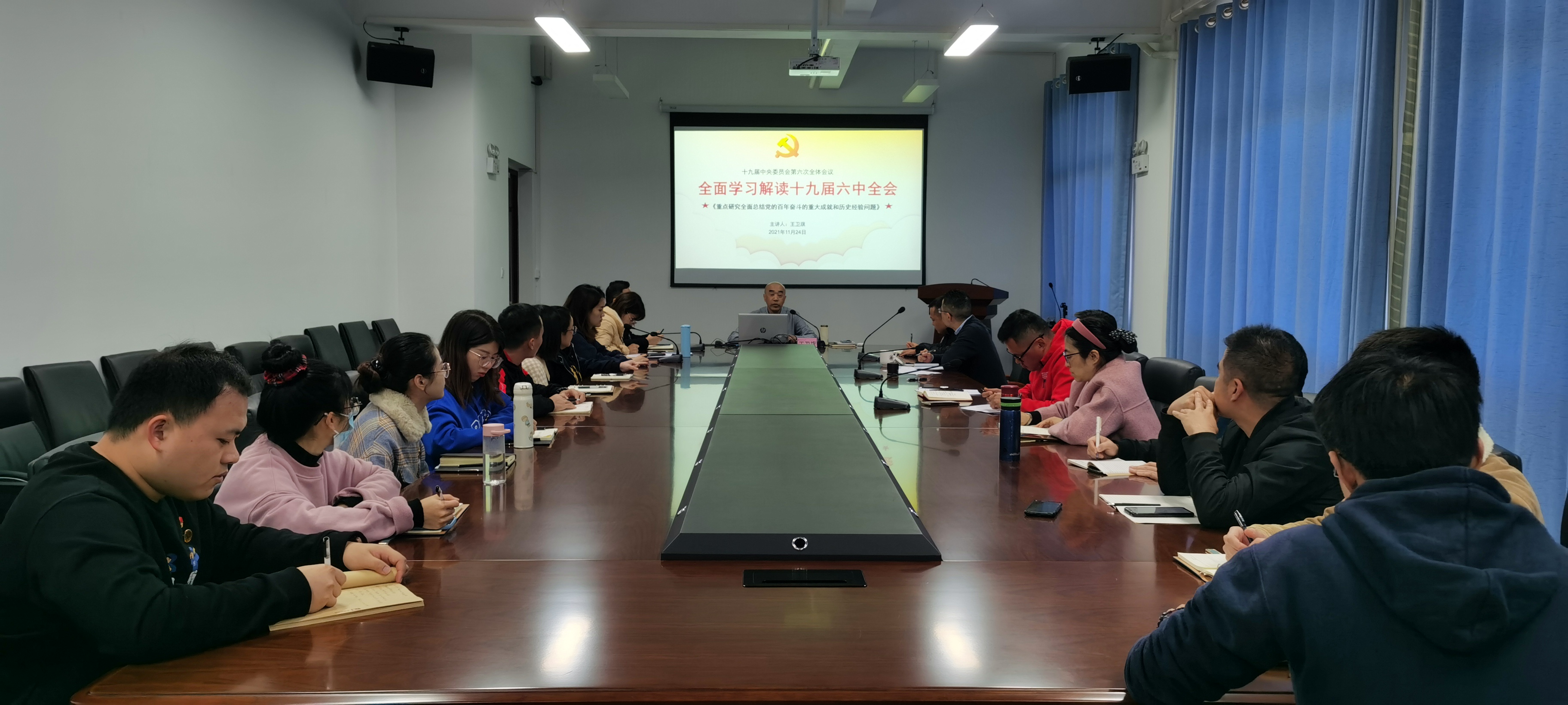 最后,学校党委王卫旗书记作《全面学习解读党的十九届六中全会精神》的专题党课,带领与会同志学习党的十九届六中全会精神。从党的十九届六中全会概况、党的十九届六中全会召开的重要意义、党的十九届六中全会看点、如何认真学习贯彻六中全会精神四个方面,对全会精神作了阐述。重点解读了全会提到的“三次飞跃”、“四个伟大成就”和“五大历史意义”,他强调要把学习宣传贯彻党的十九届六中全会精神作为当前和今后一个时期的重大政治任务,各党总支、党支部要精心组织学习培训,有效开展集中宣讲,深入开展宣传阐释,统筹抓好宣传工作,迅速掀起学习宣传贯彻全会精神的热潮,巩固党史学习教育优秀成果,引领全校师生贯彻落实党的教育方针,实现学校内涵式高质量发展,为党、为国培养德智体美劳全面发展的社会主义建设者和接班人。
