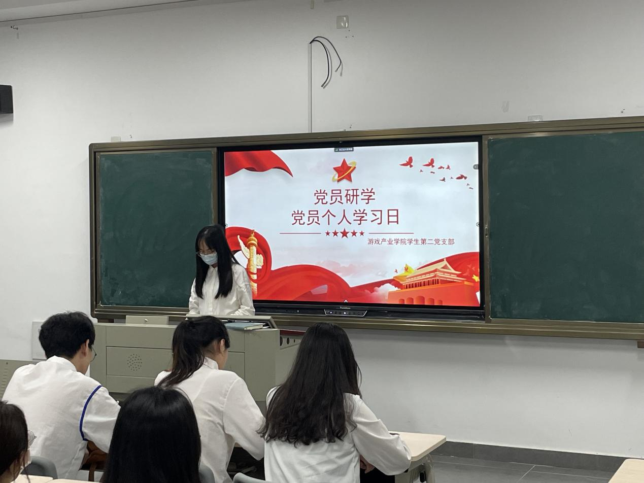 会上,游戏产业学院学生第二党支部的全体党员重点学习了《弘扬科学家精神,建功立业新时代》为主题的学习会议。会议在雄壮的国歌声中拉开序幕,支部书记陈琳颖同志向大家介绍了本次学习会议的背景,并着重阐述了科学家精神的内涵,强调全体学生落实“立德树人”根本任务,进一步引导广大青年树立远大志向,承担当代青年使命。