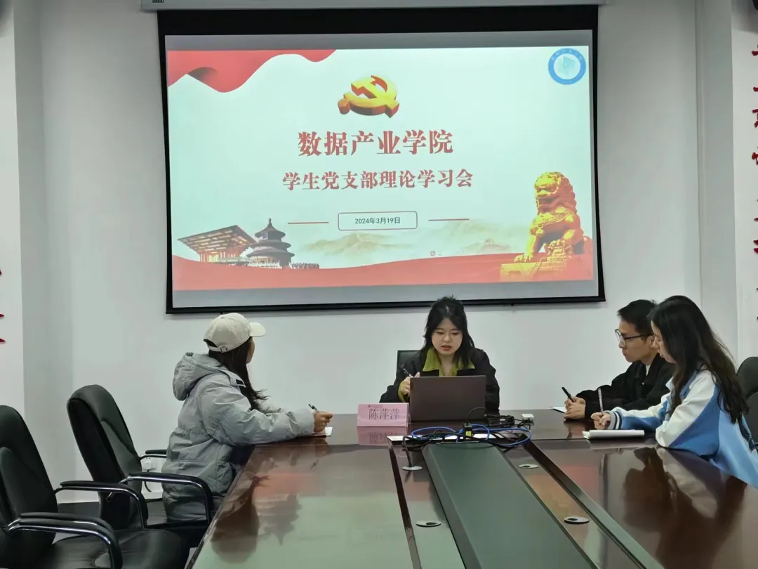 为改进党员工作作风,加强党员干部教育监督管理,全面学习两会精神,在思想、工作、学习、生活等方面坚持党性原则,增进团结,加强自身建设,增强学生党支部的创造力与凝聚力,数据产业学院党总支于3月19日上午在行政楼306党员活动室开展3月份的政治理论学习活动。数据产业学院学生党支部书记陈萍萍、团委书记张梦颖、辅导员林榛桢、卓兴涛参加本次学习,会议由学生党支部书记陈萍萍主持。