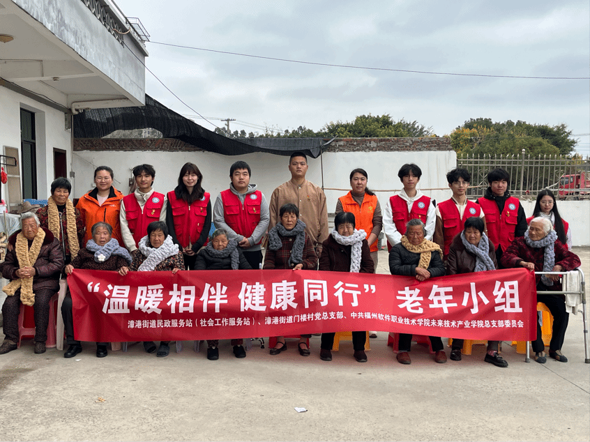 为深入践行 “我为群众办实事” 的服务理念,传递对老年群体的关怀与温暖,2026 年1月19日,中共福州软件职业技术学院未来技术产业学院总支部委员会联合漳港街道民政服务站社会工作服务站)、漳港街道门楼村党总支部,共同走进门楼村养老院,开展 “温暖相伴 健康同行” 主题党日活动。未来技术产业学院党员代表、入党积极分子参与本次活动,以实际行动为冬日里的养老院增添了浓浓暖意。