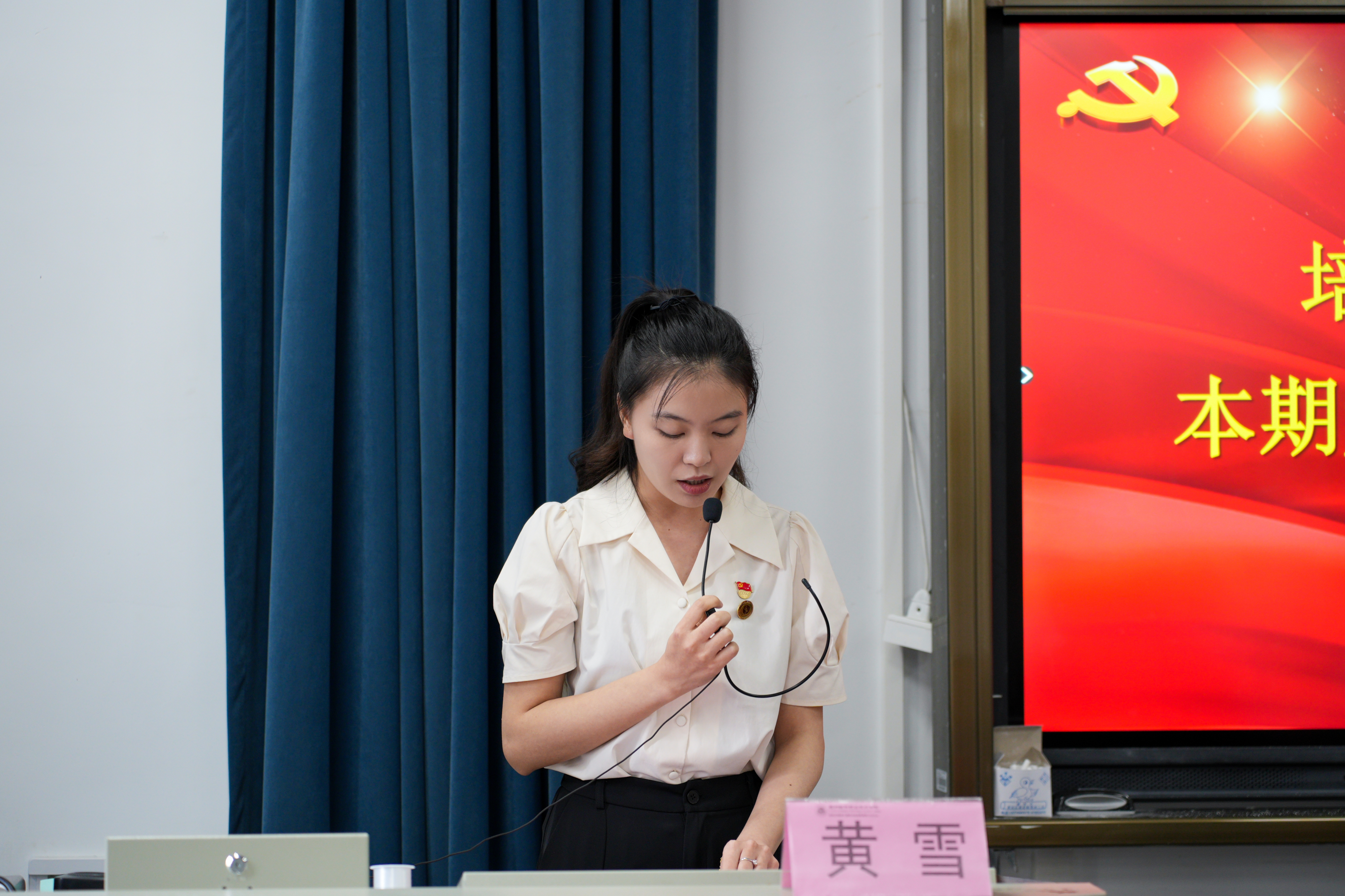 培训班班主任黄雪汇报党校第十五期发展对象培训班培训情况
