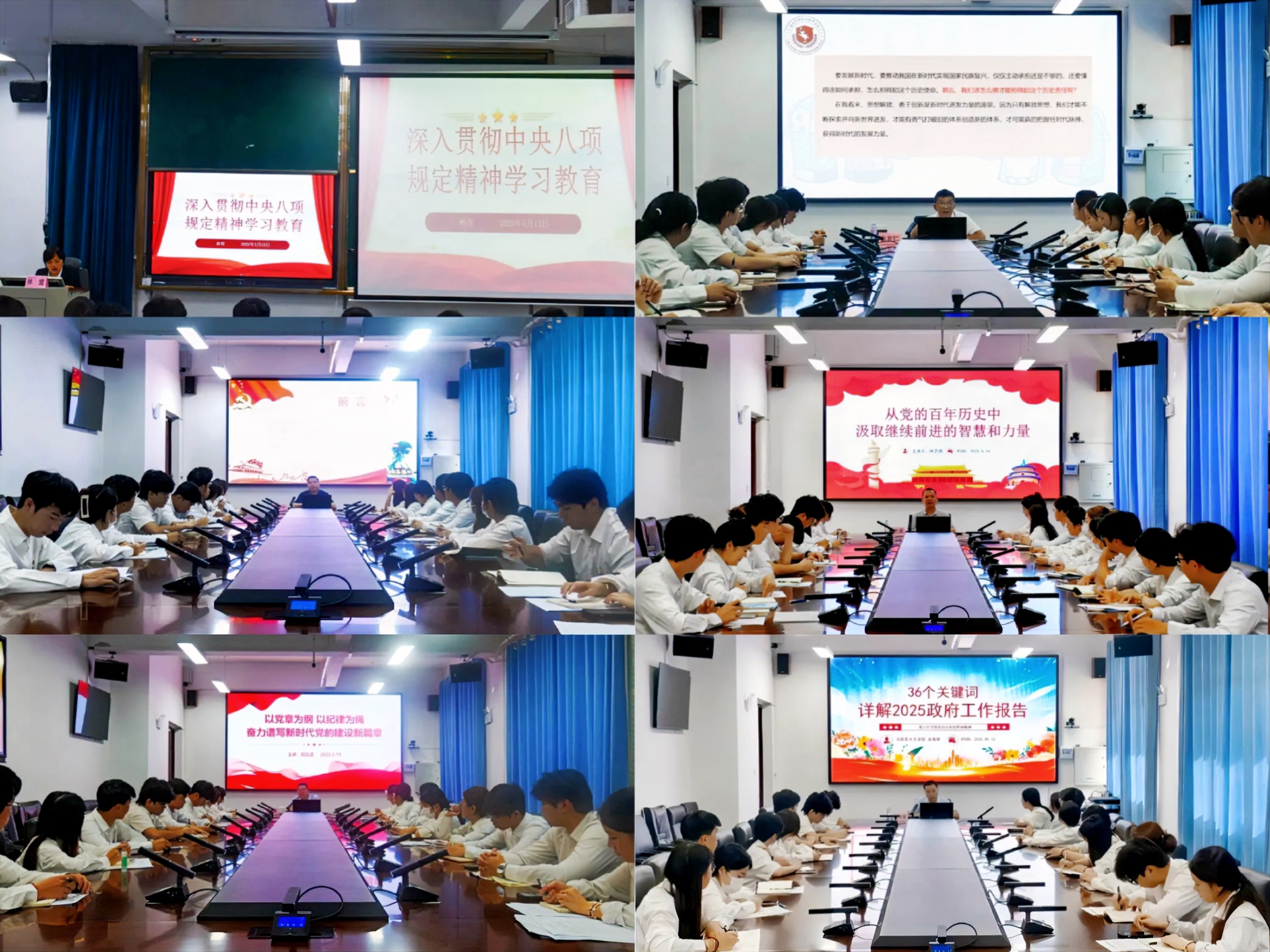 此次培训采取集中授课的方式,开设《深入贯彻中央八项规定精神学习教育专题党课》、《当下,大学生如何用五四精神武装自己》、《36个关键词详解2025政府工作报告——2025两会精神学习》、《从百年历史看党的初心和使命》、《以党章为纲 以纪律为绳 奋力谱写新时代党的建设新篇章》、《立足岗位讲奉献 勇于担当比作为》等六个专题讲座。课程设置兼具理论高度与实践深度,通过体系化的政治引领和思想淬炼,着力夯实学员思想根基,筑牢政治忠诚,为培养对象系好政治生命的"第一粒纽扣",校准人生航向的"政治罗盘"。