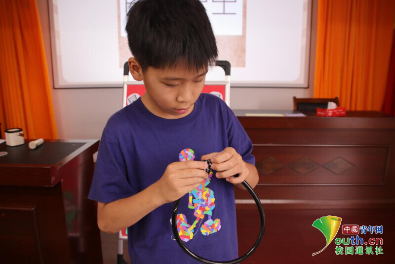 图为小朋友在贴线索条。胡陈龙 供图