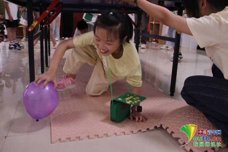 图为实践队员帮助小朋友制作红军包。李小阅 供图