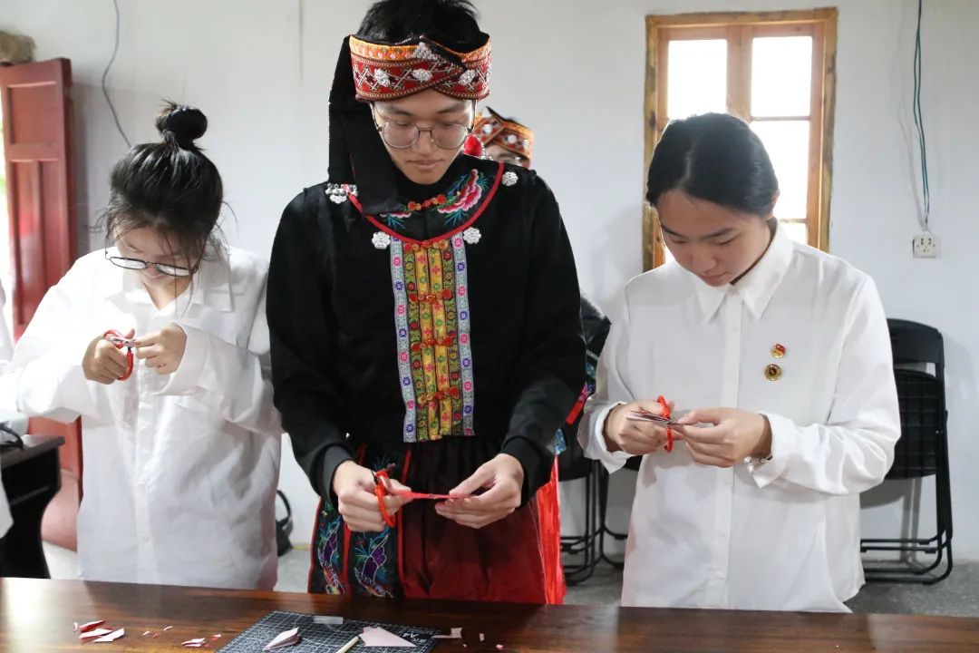 除了特色的“打鼓板”,畲村剪纸艺术、共绘畲村画卷等体验也让学生们惊叹不已。大家纷纷拿起剪刀和彩纸,通过剪纸、绘画等形式表达对少数民族文化浓烈的热爱。