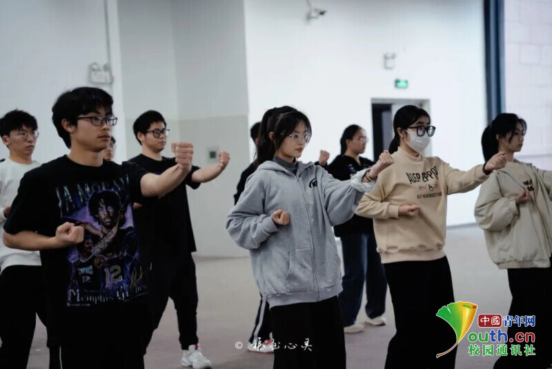 图为福州软件职业技术学院的同学们在练习詠春拳。中国青年网通讯员 林沐含 摄