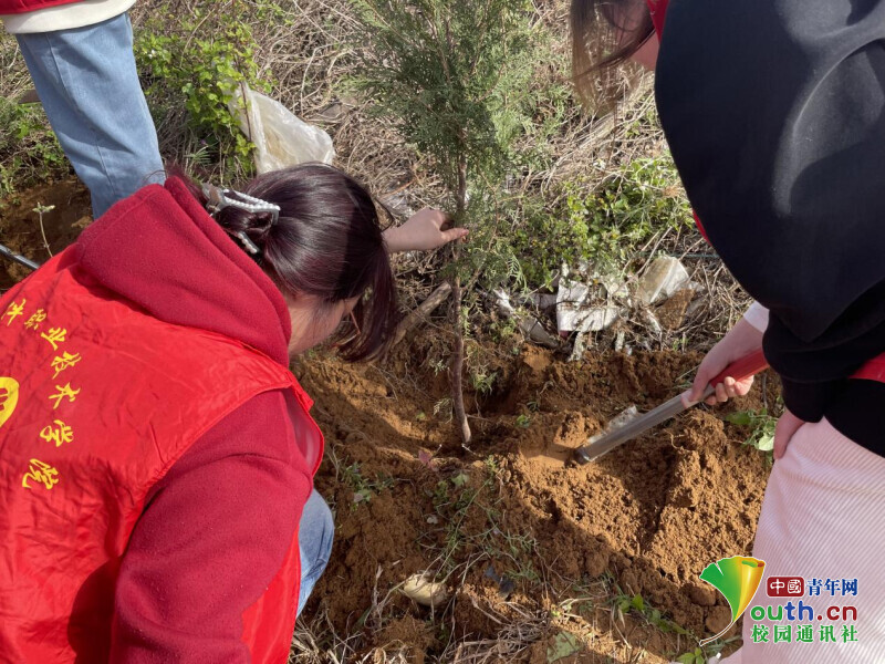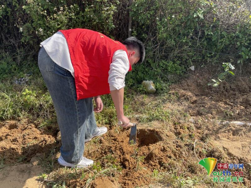 图为志愿者刨土。中国青年网通讯员 蔡悦盛 供图