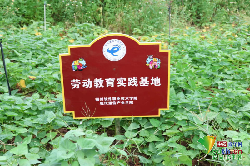 图为学校劳动教育基地指示牌立于责任田中。中国青年网通讯员 陈淑婷 摄