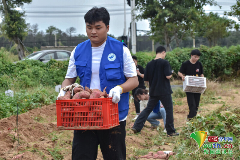图为学生代表共同搬运丰收的红薯。中国青年网通讯员 许玉立 苏思瑜 摄