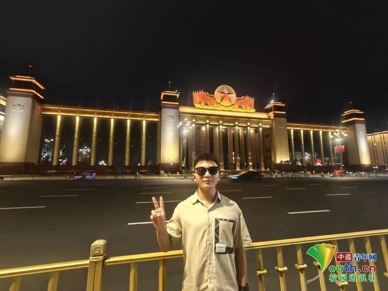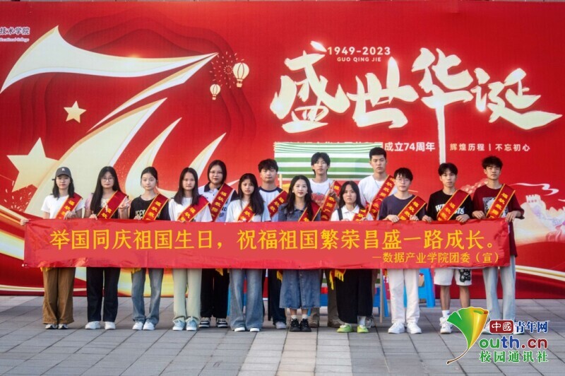 图为数据产业学院参与校团委举办的国庆打卡活动。中国青年网通讯员 刘旭斌 摄