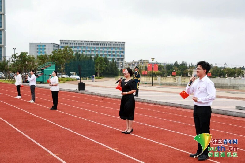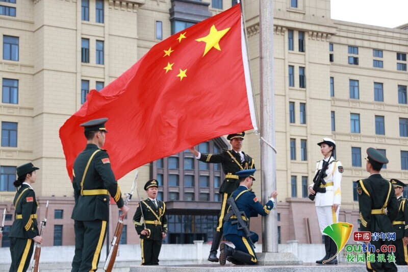 图为学校庆国庆升国旗仪式。中国青年网通讯员 李宇焓 摄