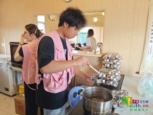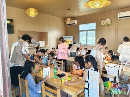 图为志愿者们正在后厨为孩子们准备午餐。林竞男 供图图为志愿者正在指导帮助孩子们做凤梨盆栽。林竞男 供图